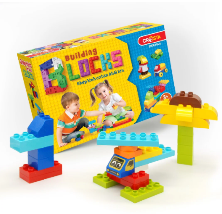 Mảnh ghép với nhiều màu sắc giúp bé tự do sáng tạo, lắp ghép ra các mô hình như ngôi nhà, ô tô, con vật, đoàn tàu..