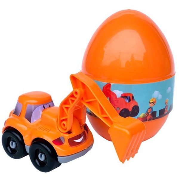 - Đầu tiên bé hãy xoay tròn quả trứng và mở nắp trứng bé sẽ thấy những bộ phận đồ chơi chưa được lắp ráp