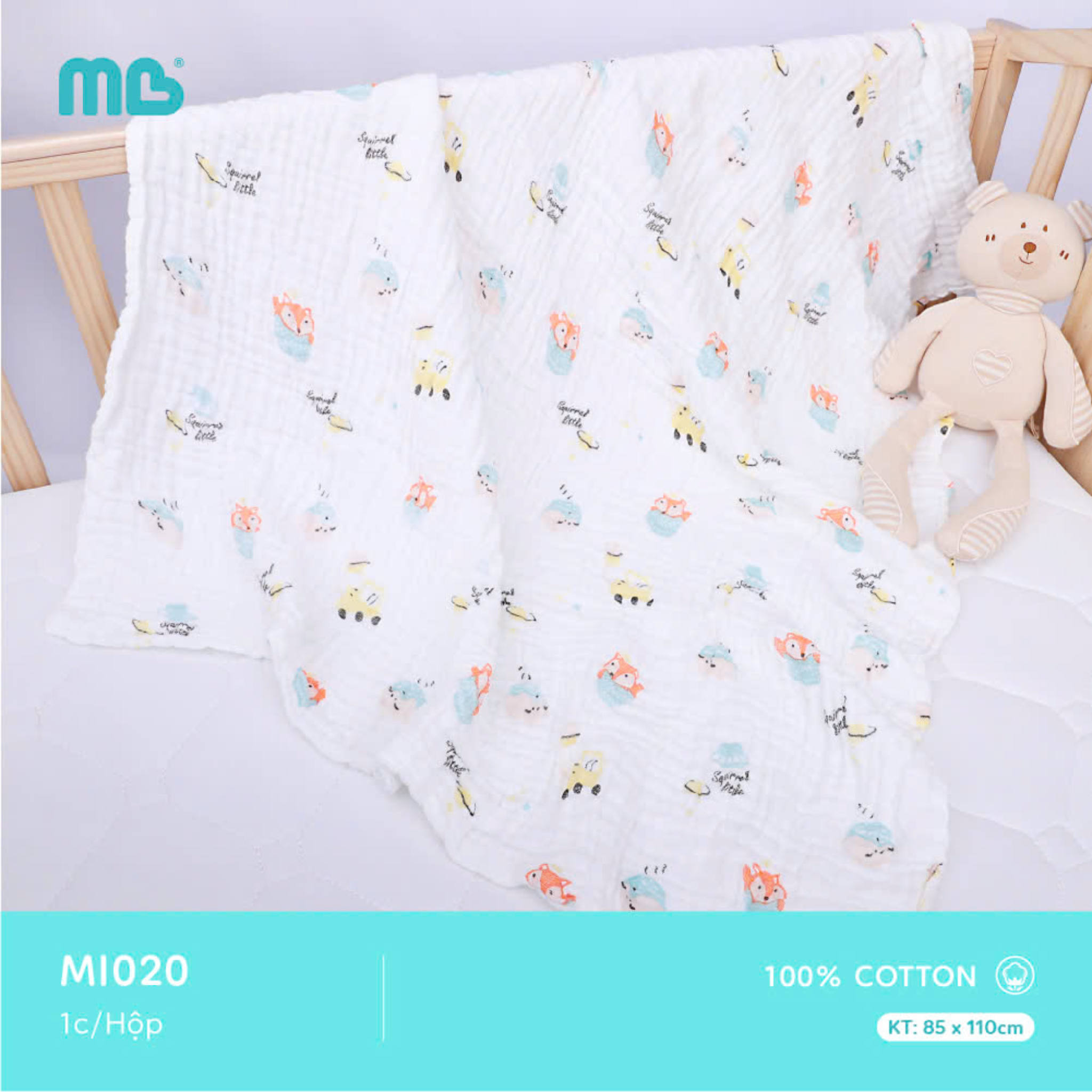 Kích thước lớn 85×100cm: phủ kín cho bé sơ sinh đến bé lớn hơn.