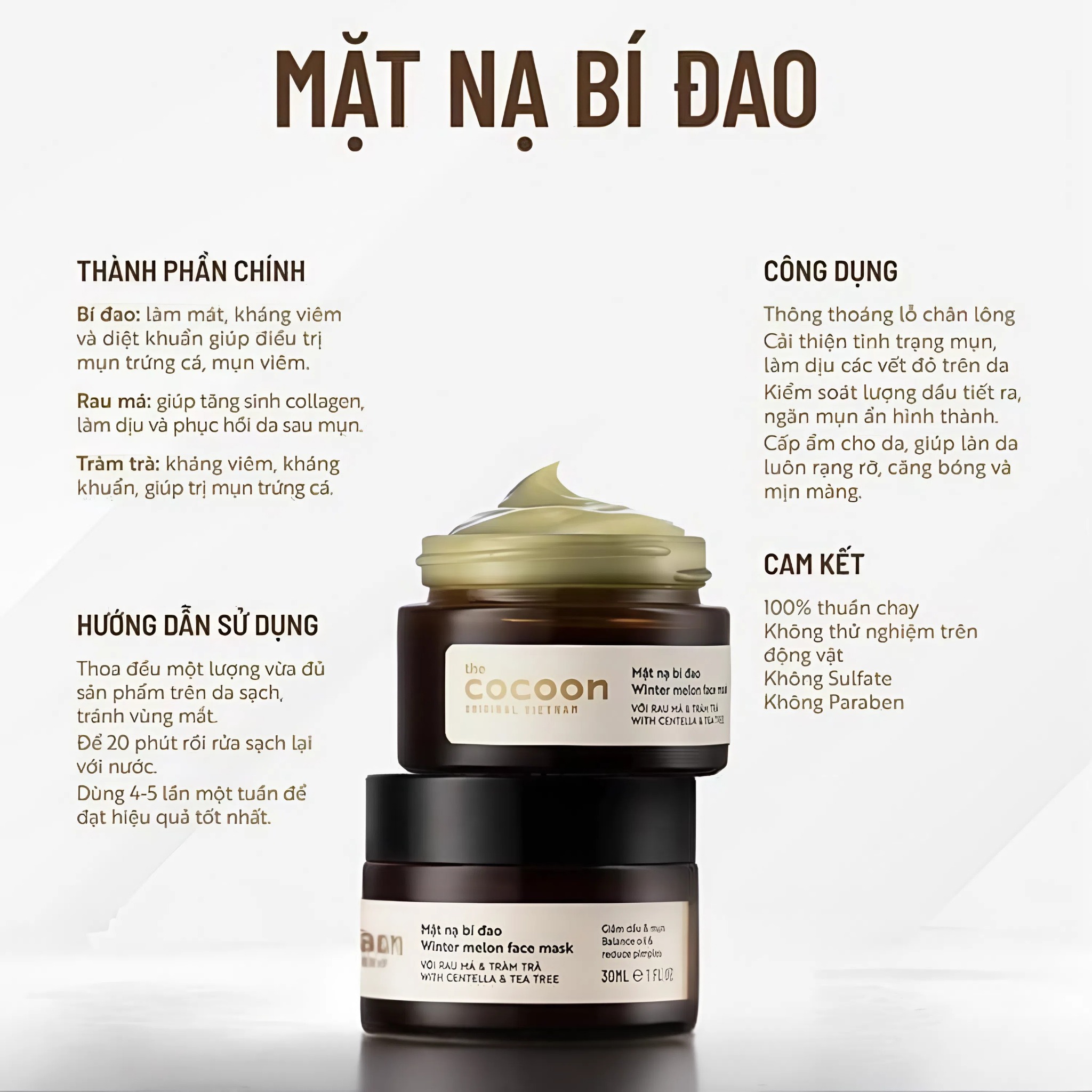 🍈 MẶT NẠ BÍ ĐAO COCOON – LÀN DA SẠCH MỤN, MÁT MẸ MÁT DA