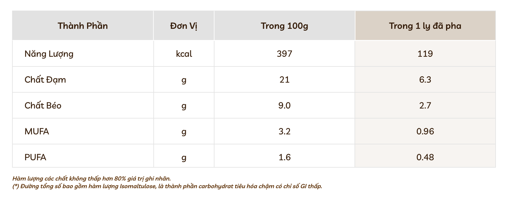 3. Pha 5 muỗng gạt (khoảng 30 g) với 200 ml nước chín ấm (khoảng 50 oC). Khuấy đều và sử dụng.