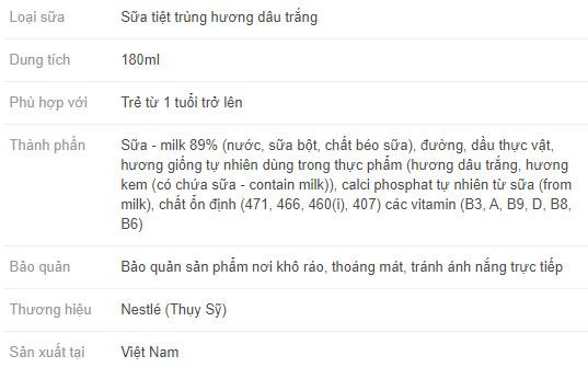 Từ 100% sữa tươi từ bò ăn cỏ tươi nên nguồn dinh dưỡng mà sữa tươi Nestle mang lại vô cùng dồi dào, cung cấp canxi và protein cho cơ thể. Lốc 4 hộp sữa tiệt trùng hương dâu trắng Nestlé NutriStrong 180ml hương dâu trắng hấp dẫn, lạ miệng