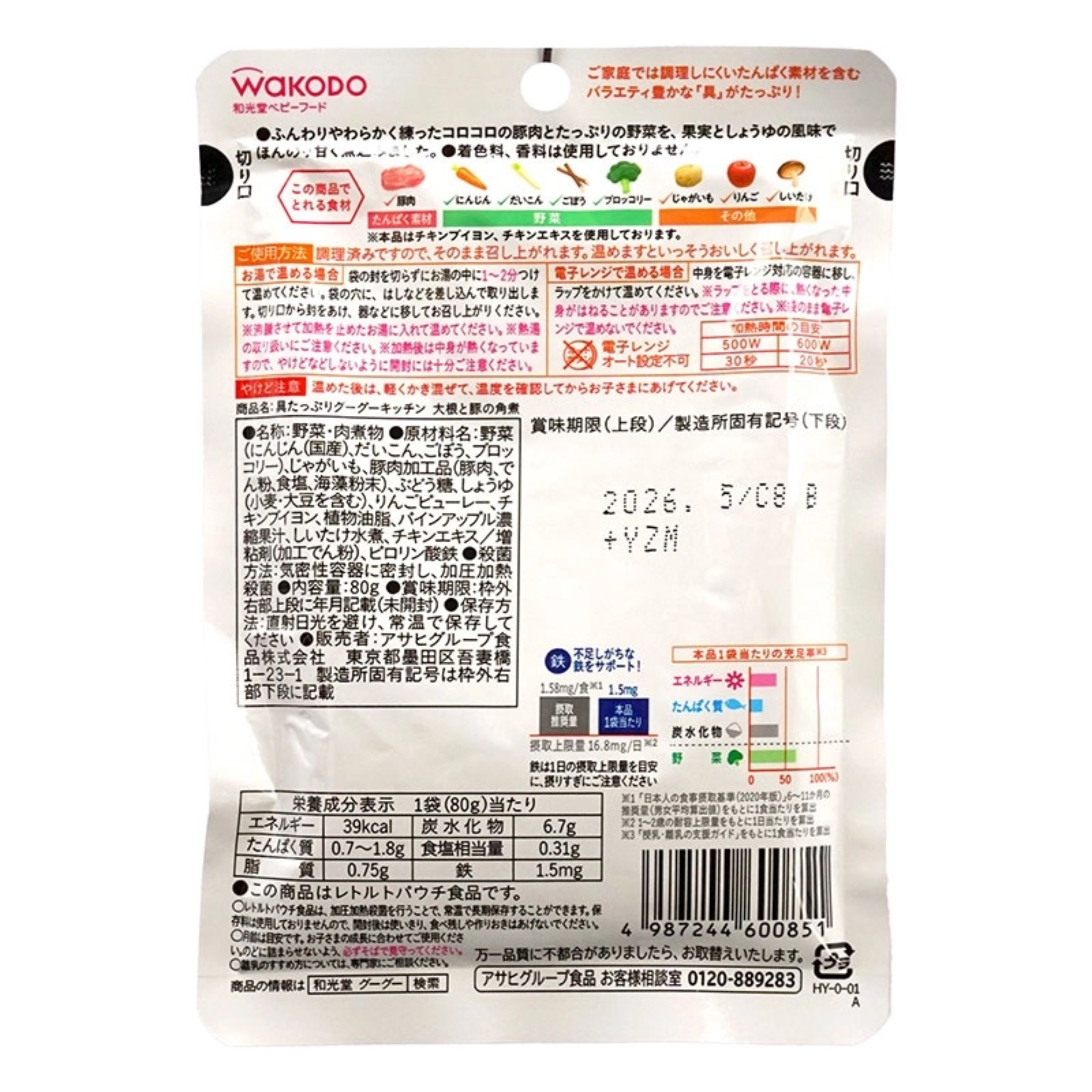 Thịt heo và rau củ hầm kiểu Nhật Wakodo 80g